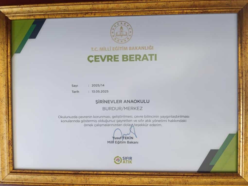 Okulumuz, Bakanlığımız tarafından başlatılan; atık üretimini azaltmak, öğrencilerde geri dönüşüm alışkanlığı kazandırmak, çevre bilincini geliştirmek, sürdürülebilir kalkınma için farkındalık oluşturmak ve yaratıcı- yenilikçi çözümler geliştirmeyi amaçlayan Sıfır Atık Yarışması’nın Yaşayan Okul Bahçeleri kategorisinde il birincisi seçilerek "Çevre Beratı" almaya hak kazanmıştır.